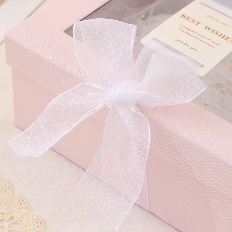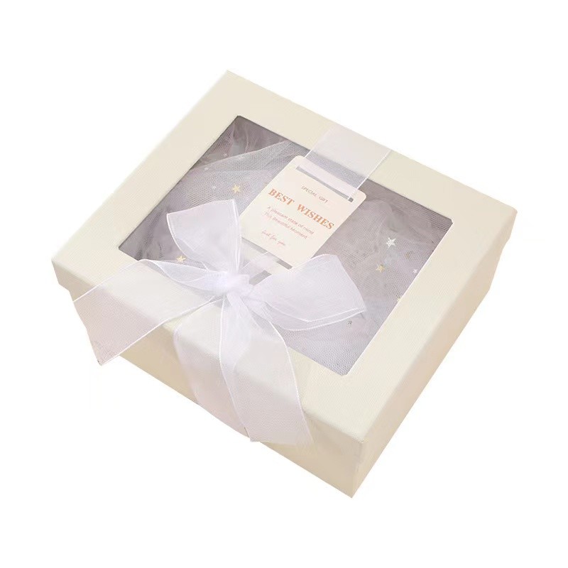 Białe pudełko na zestaw upominkowy Przezroczyste pudełko urodzinowe z PVC Zestaw upominkowy z jedwabiem i kosmetycznym pudełkiem upominkowym raffie